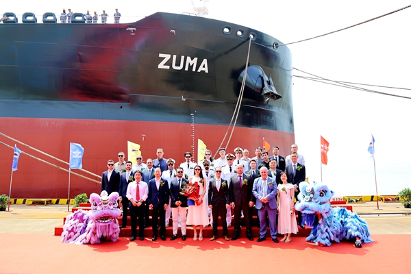 7月14日上午,公司在東區(qū)碼頭隆重舉行船舶命名儀式,49#115000噸油船被命名為“ZUMA”號;15日下午,公司又舉行船舶簽字交付儀式,該船正式交付船東運(yùn)營。