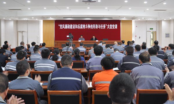 為進一步加強企業(yè)黨的建設(shè),扎實推進全面從嚴(yán)治黨,切實增強廣大黨員的黨性修養(yǎng),構(gòu)筑健康規(guī)范的管理生態(tài)新氣象,4月28日上午9:00,公司黨委在新時代賓館三樓會議室組織開展“黨風(fēng)廉政建設(shè)和反腐敗斗爭的形勢與任務(wù)”大型黨課教育活動,活動由黨委委員、總經(jīng)理助理徐震宇主持,黨委書記周燦榮,副書記劉海金,委員張玉永、朱韓鋼出席,二百余名黨員、建黨對象、積極分子參加了活動。