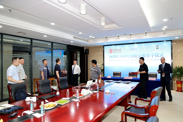 7月22日上午,公司在八樓會議室舉行船舶簽字交付儀式,名為“ATOKOS”號的1#299500噸油船交付希臘船東Dynacom運營。